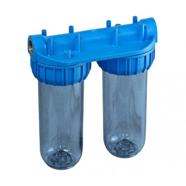 Для подключения к водопроводу в корпусе фильтра залиты вставки из латуни с внутренней цилиндрической резьбой 1/2», 3/4» или 1».