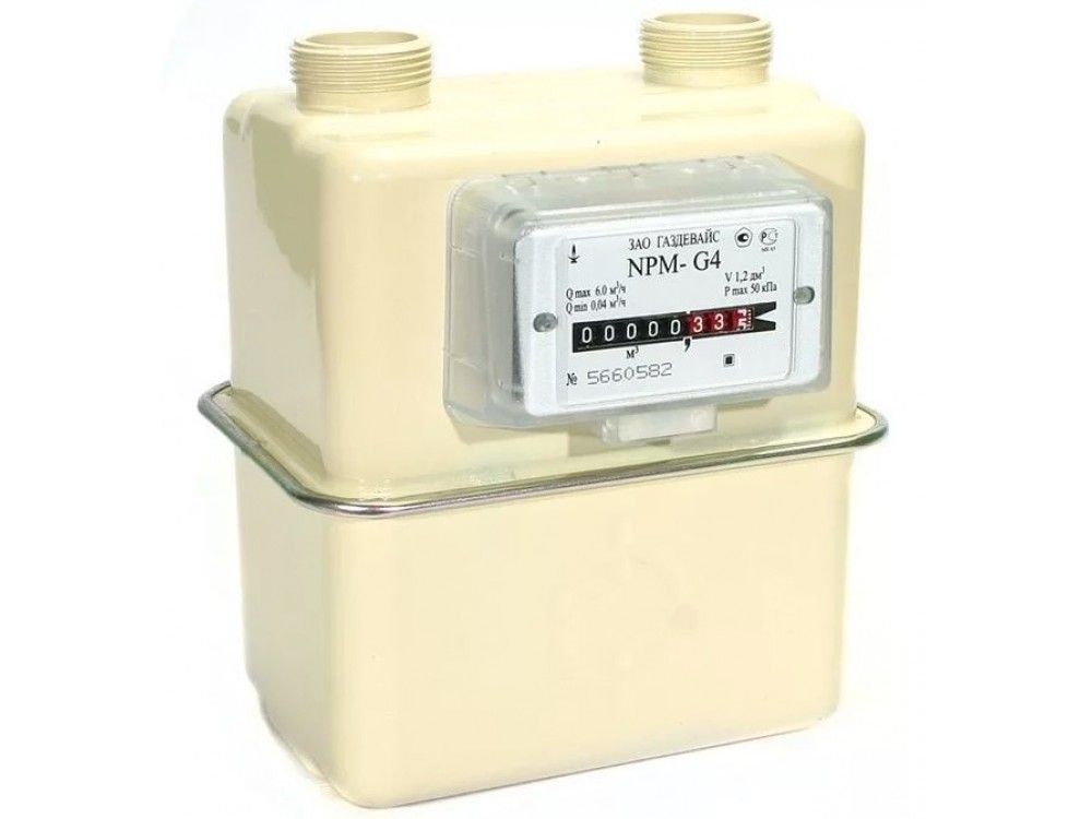 - По заказу покупателей может комплектоваться переходниками, фильтрами. Производитель: Газдевайс Номинальный расход, Qном 4 Межосевое растояние, мм 110 Межповерочный интервал, лет 10 Габаритные размеры, мм 188*163*112 Масса, кг 1,6 Средний срок службы, лет 20 Гарантийный срок, месяцев 24 Номинальный расход 4 Максимальный расход 6 Минимальный расход 0,04 Порог чувствительности счетчика, м3/ч 0,008 Максимальное избыточное давление, кПа 50 Максимальное избыточное рабочее давление, кПа 5 Допускаемая потеря да